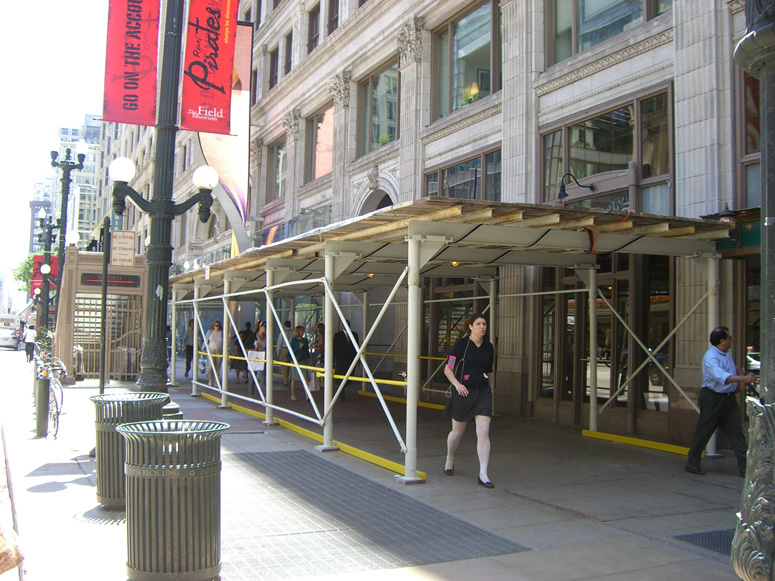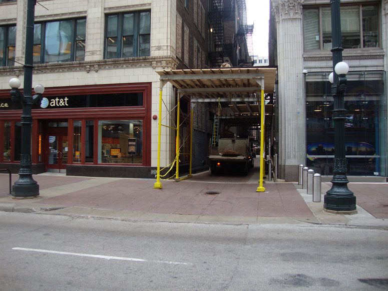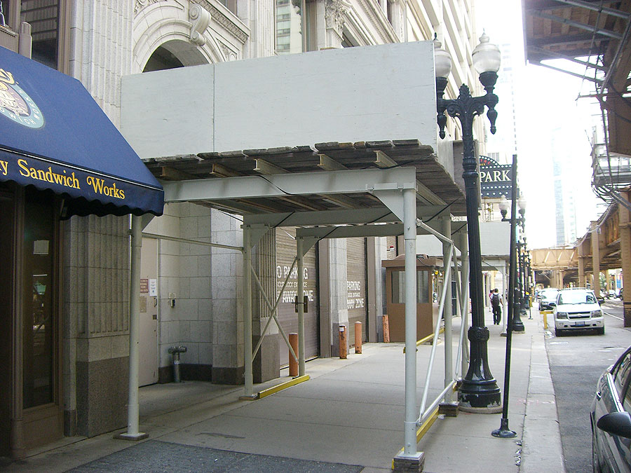 DIS owns and operates a major heavy-duty canopy division. Pedestrian canopies provide greater flexibility and lower set-up costs for protecting both pedestrians and property. Configuration, painting and erection are completed in-house and delivered to the job by our personnel. These cost savings are then passed on to the client.