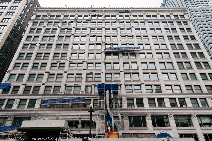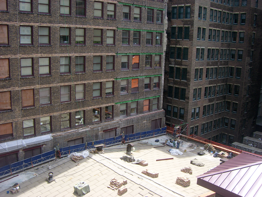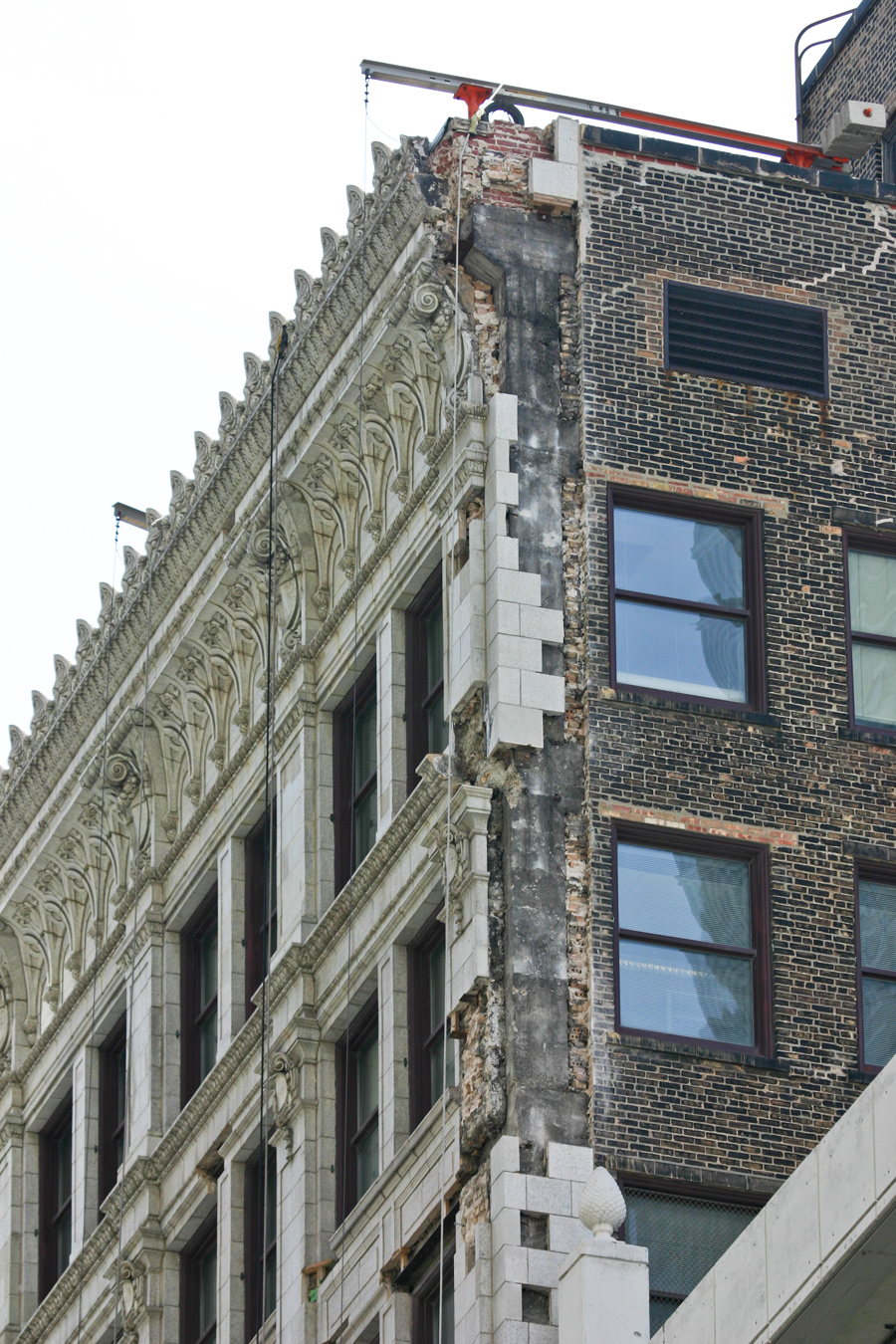 This technically demanding project combined replacement of both terra cotta and GFRC units. Other repair elements included steel angle replacement, brick masonry, and terra cotta corner and water table rebuilding. Located in a bustling part of Chicago, DIS completed this job on schedule and within budget.