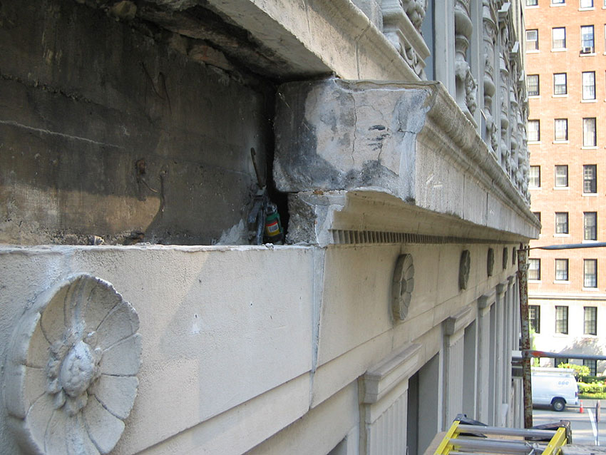This project required total removal and rebuilding of the masonry facades on both the east and north elevations as well as other specified work on the other elevations. Located in the shadow of the John Hancock building, this 15 story landmark has outlived many residential structures of its’ age. In addition to the replacement of outer brick, the project involved total reconstruction of the parapet walls, replacement of structural steel shelf angles, replacement of limestone copings, and repair and replacement of deteriorated decorative precast concrete elements. Final touch-up work included recaulking of the windows and painting of precast concrete.