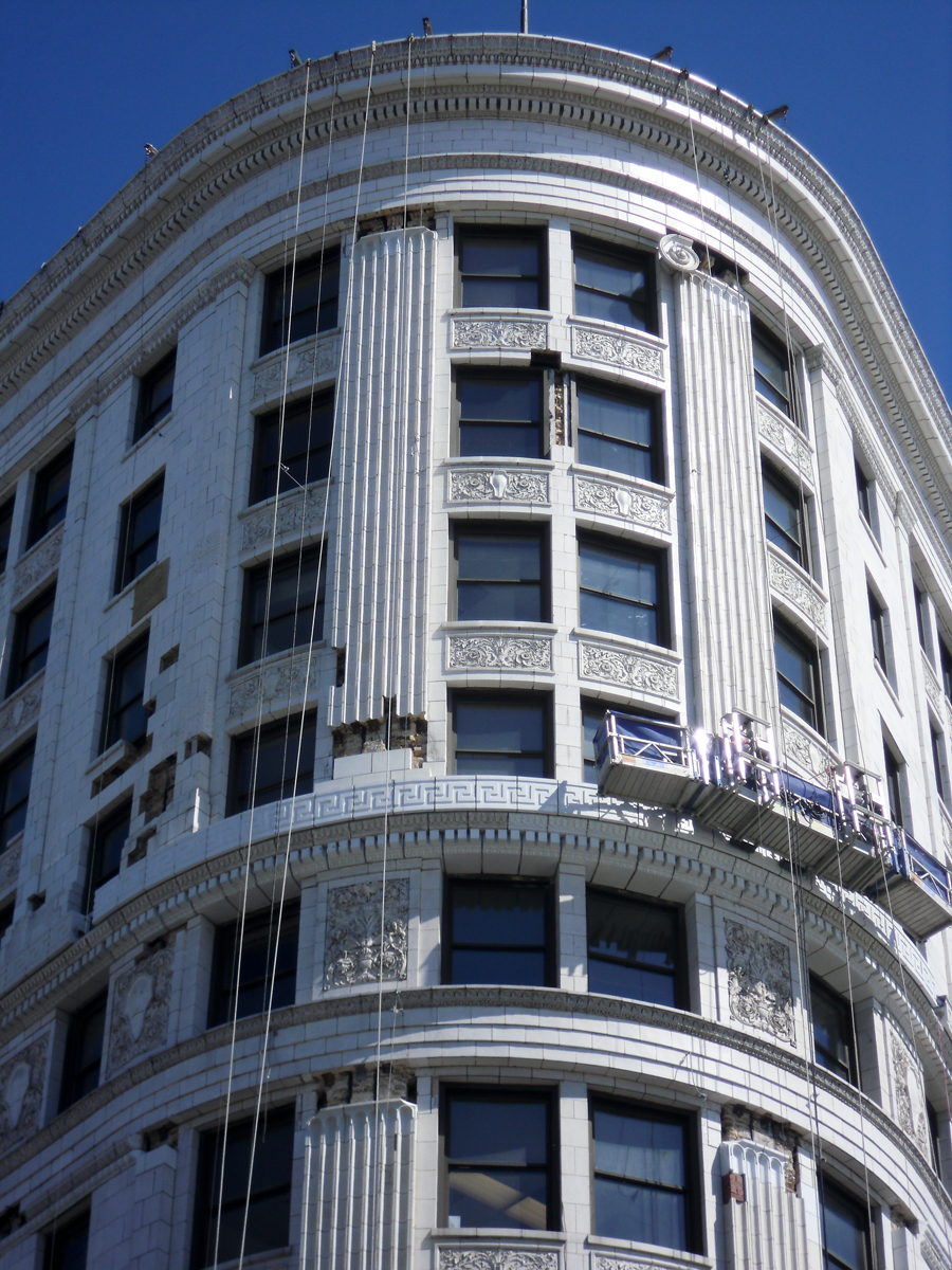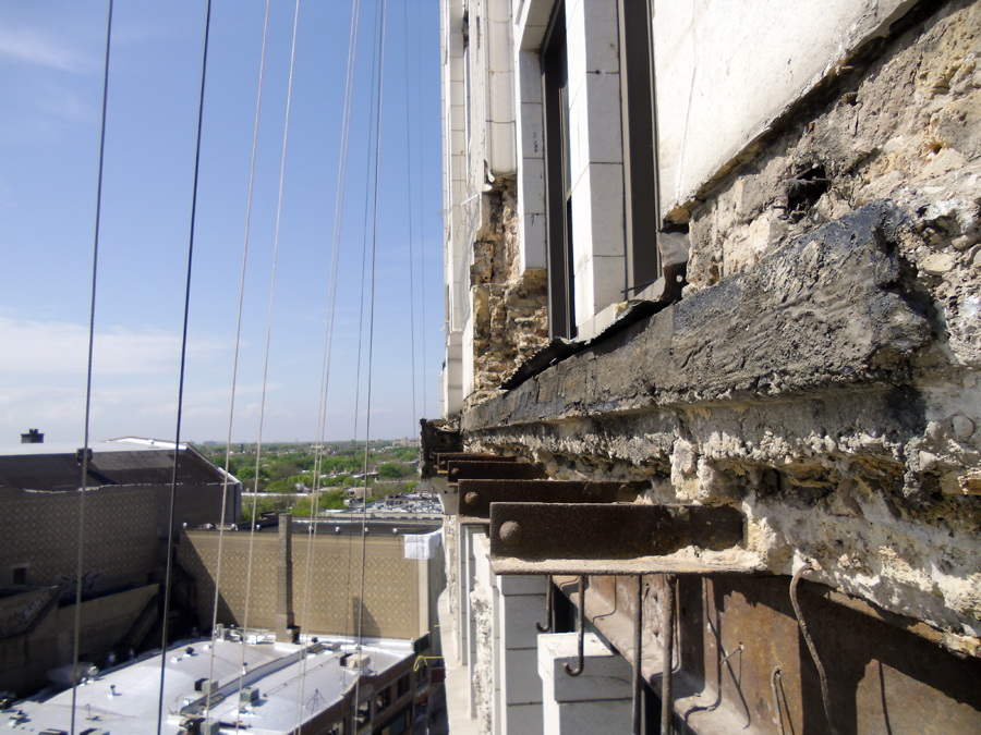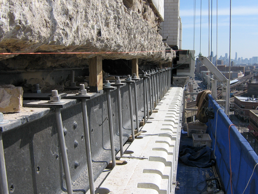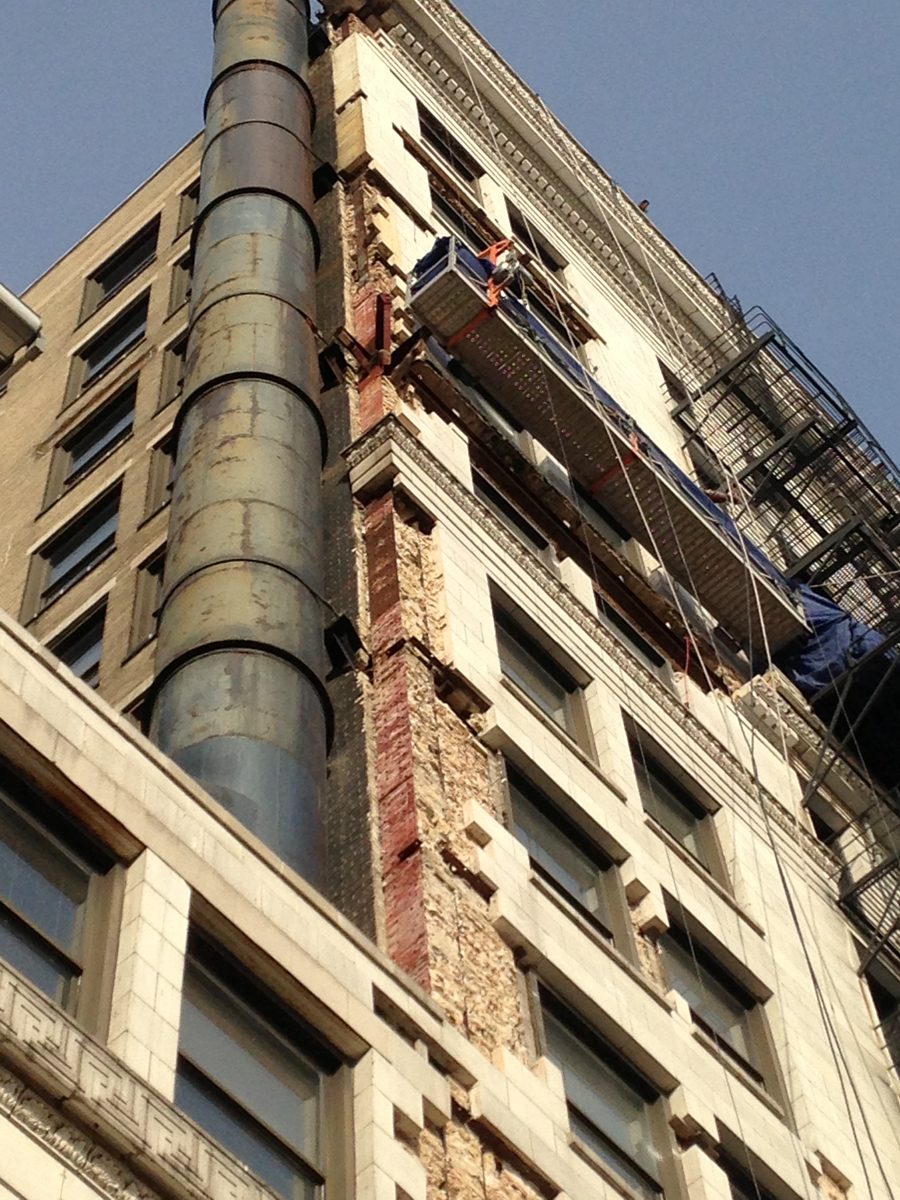This historic landmark building was in need of terra cotta resetting and replacement. Initially starting with a full building survey and removal of loose pieces, DIS proceeded to complete a full restoration project phased over numerous years. Terra cotta was replaced with GFRC, water table roofs were replaced and a complete tuckpointing/caulking program was instituted.