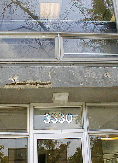 This project consisted of four buildings, three of which needed concrete repairs as a major component of the restoration work. Slab edges and columns all needed concrete repairs for spalls and delamination, but in some cases as special compound was used to seal and bridge over cracks prior to painting. This method significantly reduces the cost of repair work and increases the life of the concrete coating.