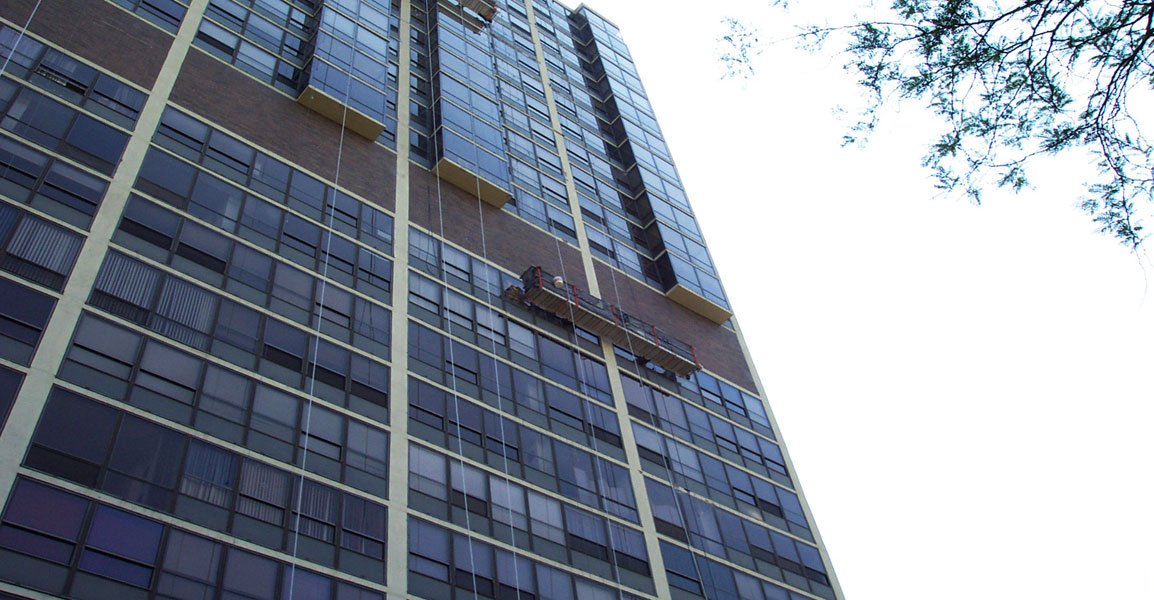 This near north conversion is a mix of brick and concrete construction. In need of concrete repairs at slab edges, beams and columns; Design Installation Systems was asked to do the work. The comprehensive project included not only concrete restoration, but also had masonry rebuilding and repair along with a great deal of recaulking work at window perimeters. DIS was able to complete all this work without the need for subcontractors and the condominium building has the added benefit of receiving a single source warranty for future repair and maintenance.