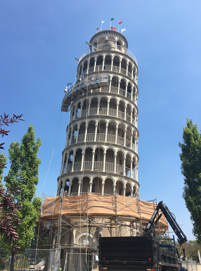 The City of Niles, IL asked DIS to restore the concrete for this scale replica of the Italian Leaning Tower. The project included repairs to all of the cast in place structure and slabs as well as casting and replacing ornate façade pieces. DIS removed and modeled items from the original façade, then made molds from the models and cast replacement pieces. New castings were installed and the building was recoated in its entirety.