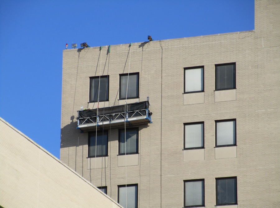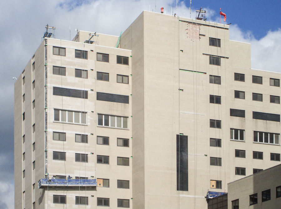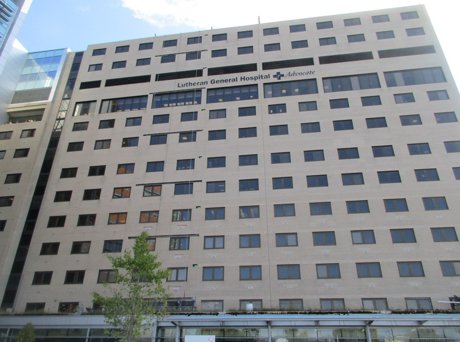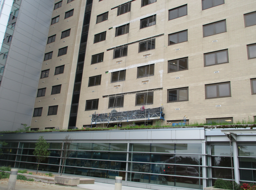 The main hospital building at the Lutheran General Hospital Complex was suffering from displaced and cracked brick as well as water entry into the building. The problems were a result of rusting steel shelf angles at each floor. These angles support the face brick and were in need of replacement. DIS completed this work, including flashing and masonry rebuilding, then completed sealant work as specified.