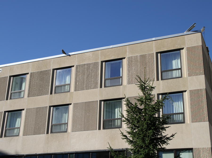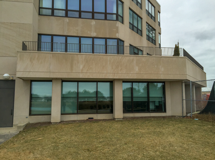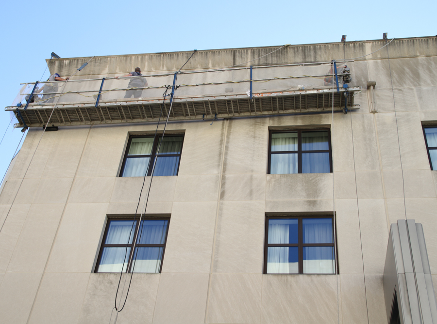 At Northwestern University the Allen Center building was in need of a thorough cleaning and Design Installation Systems was chosen for the work. As the Owner wished to add roof anchors for contractors use in current and future projects, DIS was asked to complete that work as well. Safety tie back anchors were installed, and then they were used during the cleaning work. Cleaning was completed using a water soaking method to prevent chemical damage to the stone.