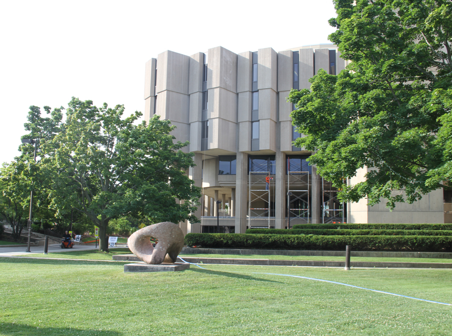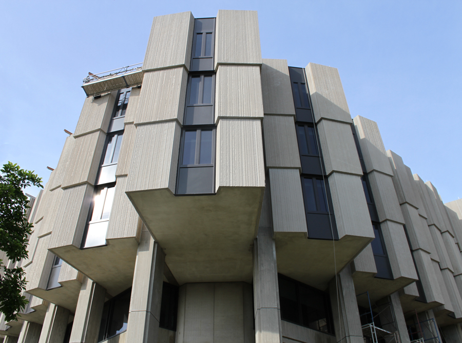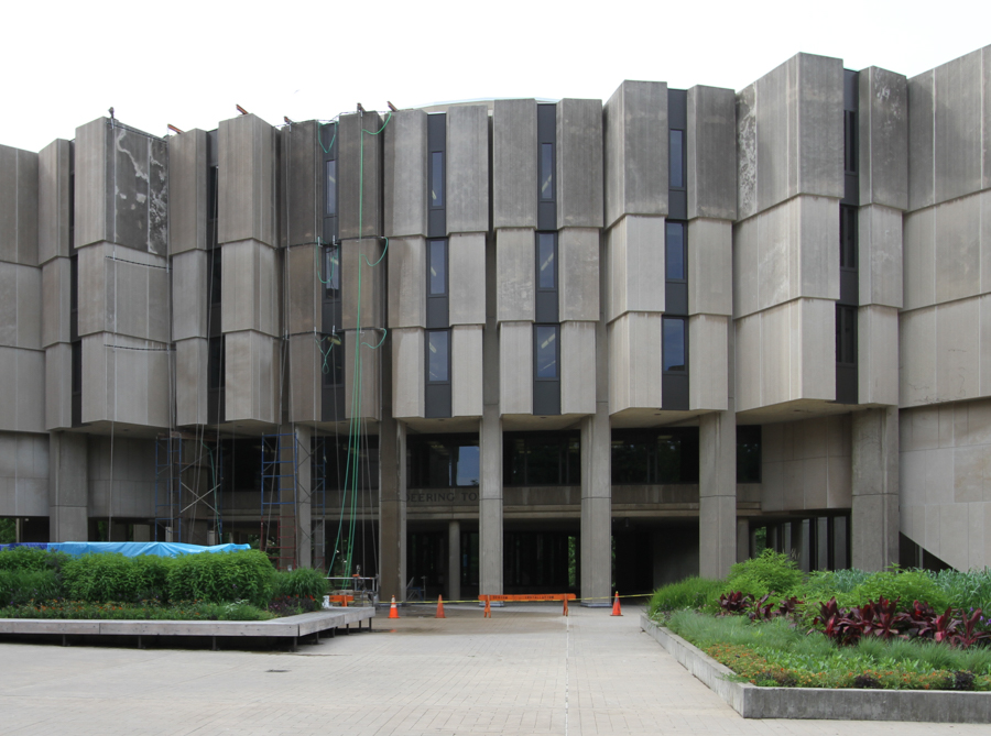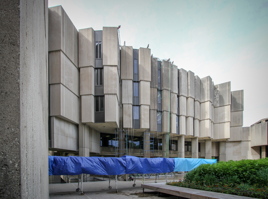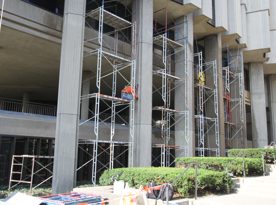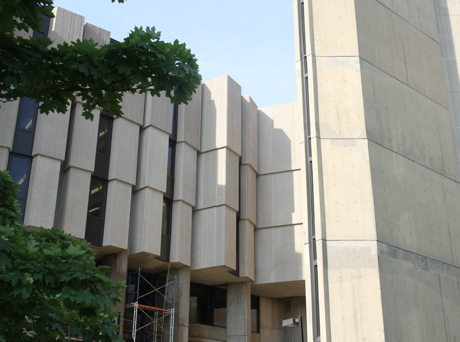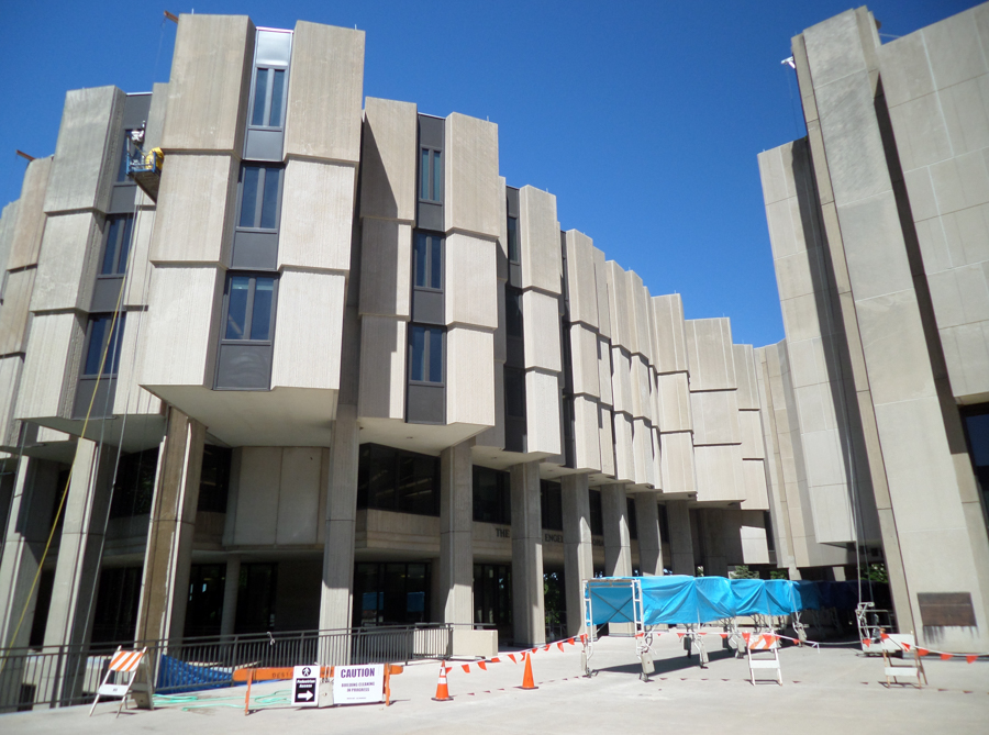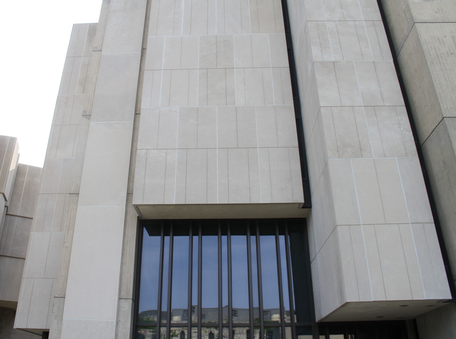 This massive limestone façade needed to be cleaned and treated with an anti-fungal solution to extend the cleaning and help protect the stone. DIS won the bid and using the soaking method and power washers, cleaned the entire façade in short order. The work was time sensitive and needed to be completed during the short period between terms. Application of the biocide and hand cleaning of hard to reach areas were particular challenges which DIS cleaning crew overcame to complete the work.