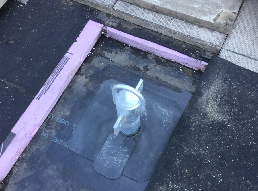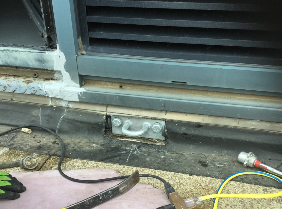 DIS was asked to install roof anchorages as safety devices for window washers and other contractors work off of the roof on the sides of the building. Types of anchorages vary from those mounted thru the roofing into the structural deck, to simple attachments to exposed beams. The work also included an engineered system of fall restraints which included attachment points and a static cable system.